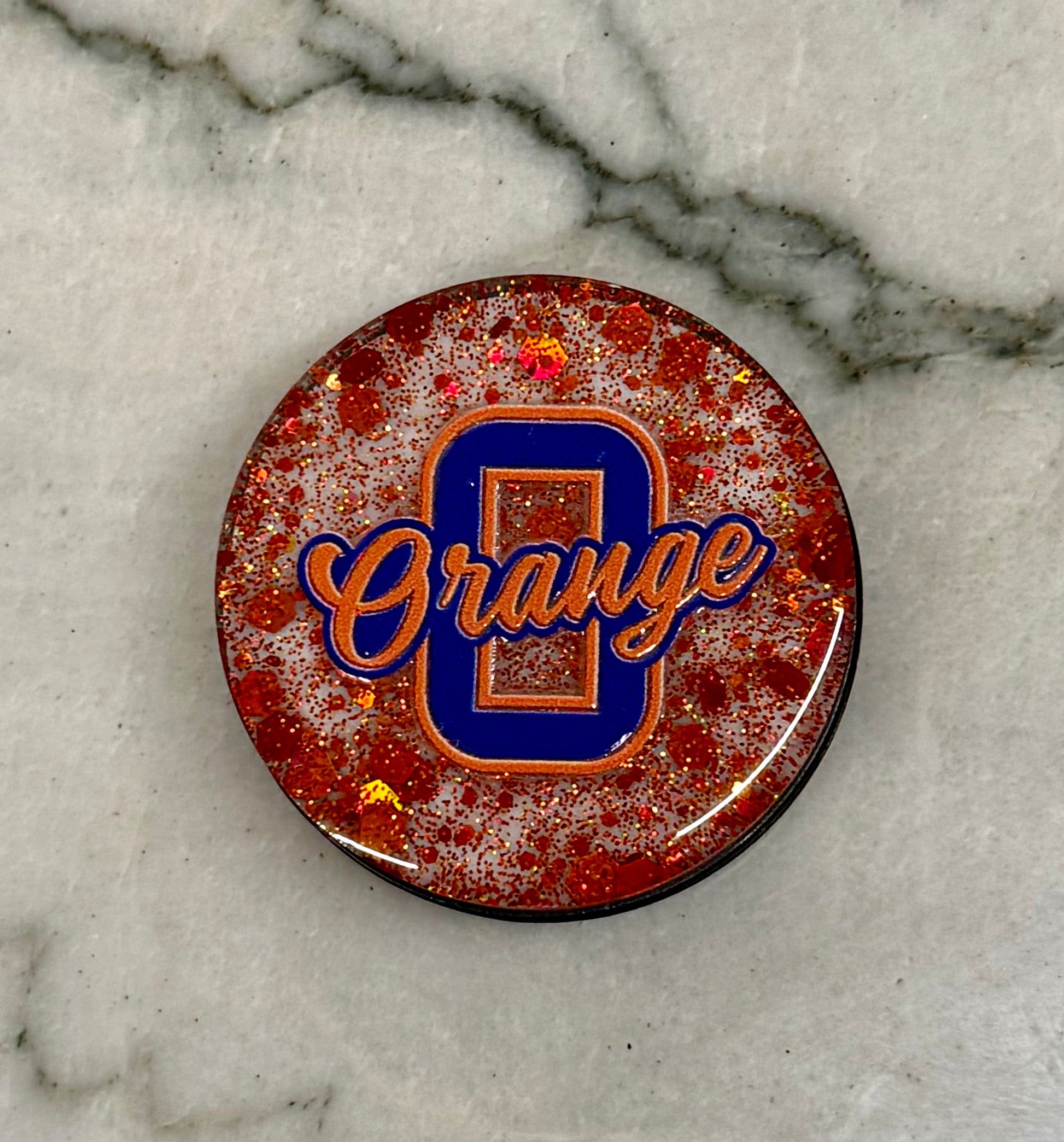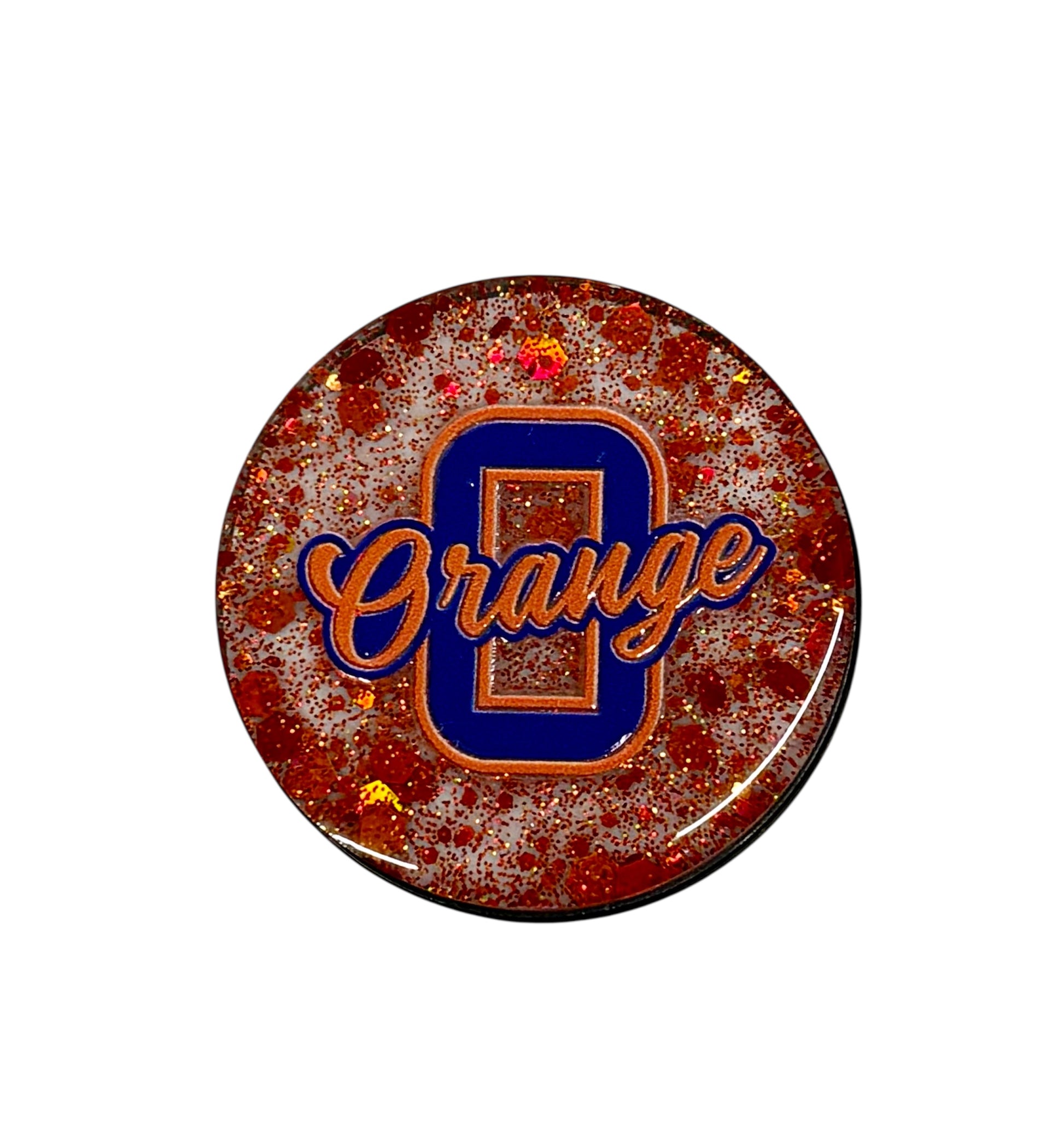 The perfect phone accessory is here! Show your school spirit with our Olentangy Orange Pioneers pop socket. The design is handmade clear with orange glitter, and the Orange Block O logo. It's amazingly smooth to the touch, lightweight and durable. The base of the pop socket is black plastic. To adhere to your phone, simply peel back on the white sticker and press onto the back of your phone. Pop sockets make your phone easy to hold and prop up.